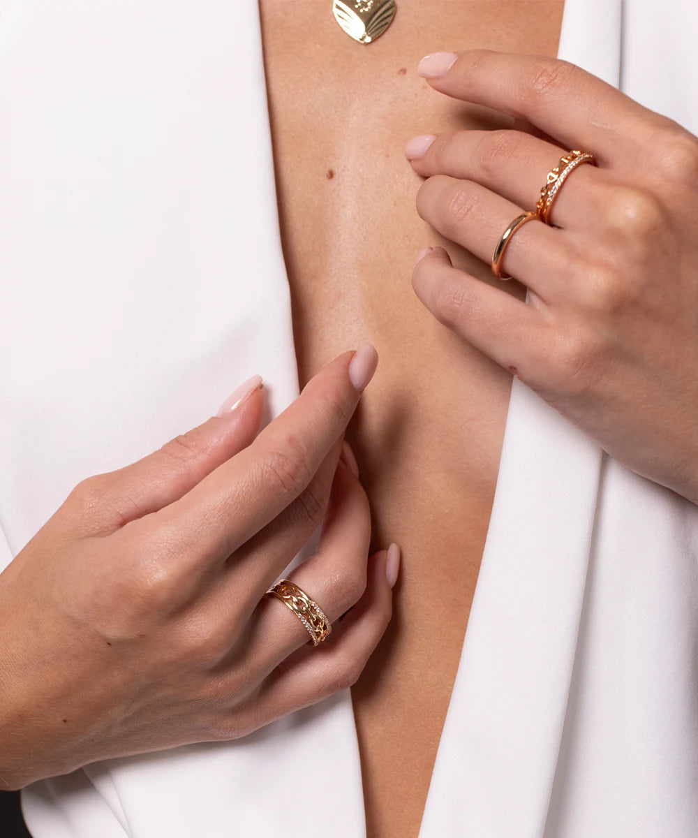 Made from premium materials, the Luxe Band is available in gold, silver, and rose gold finishes, ensuring long-lasting shine and durability. Its polished, smooth surface enhances its refined aesthetic, making it a must-have for modern jewelry lovers.
